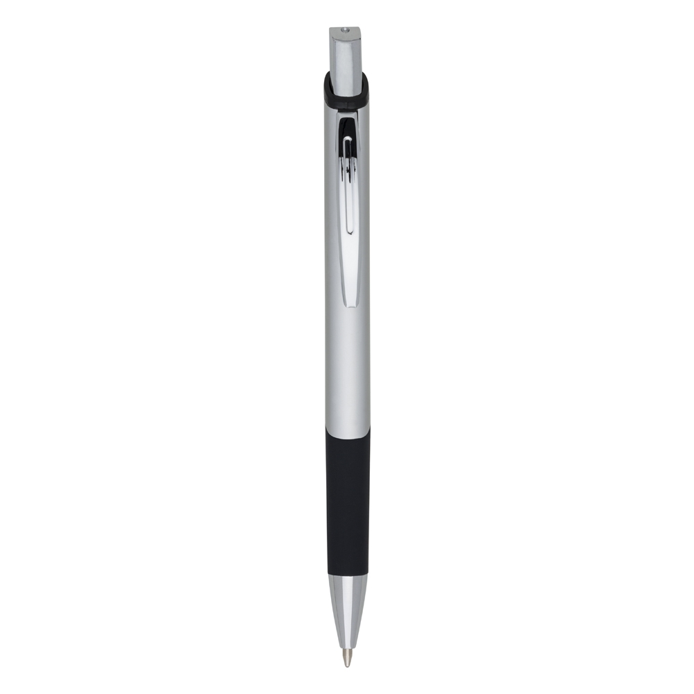 Descrição: Caneta metálica com design quadrangular, acabamento brilhante (exceto a prata) e detalhe emborrachado, carga esferográfica azul 1.0 mm e acionamento por clique.